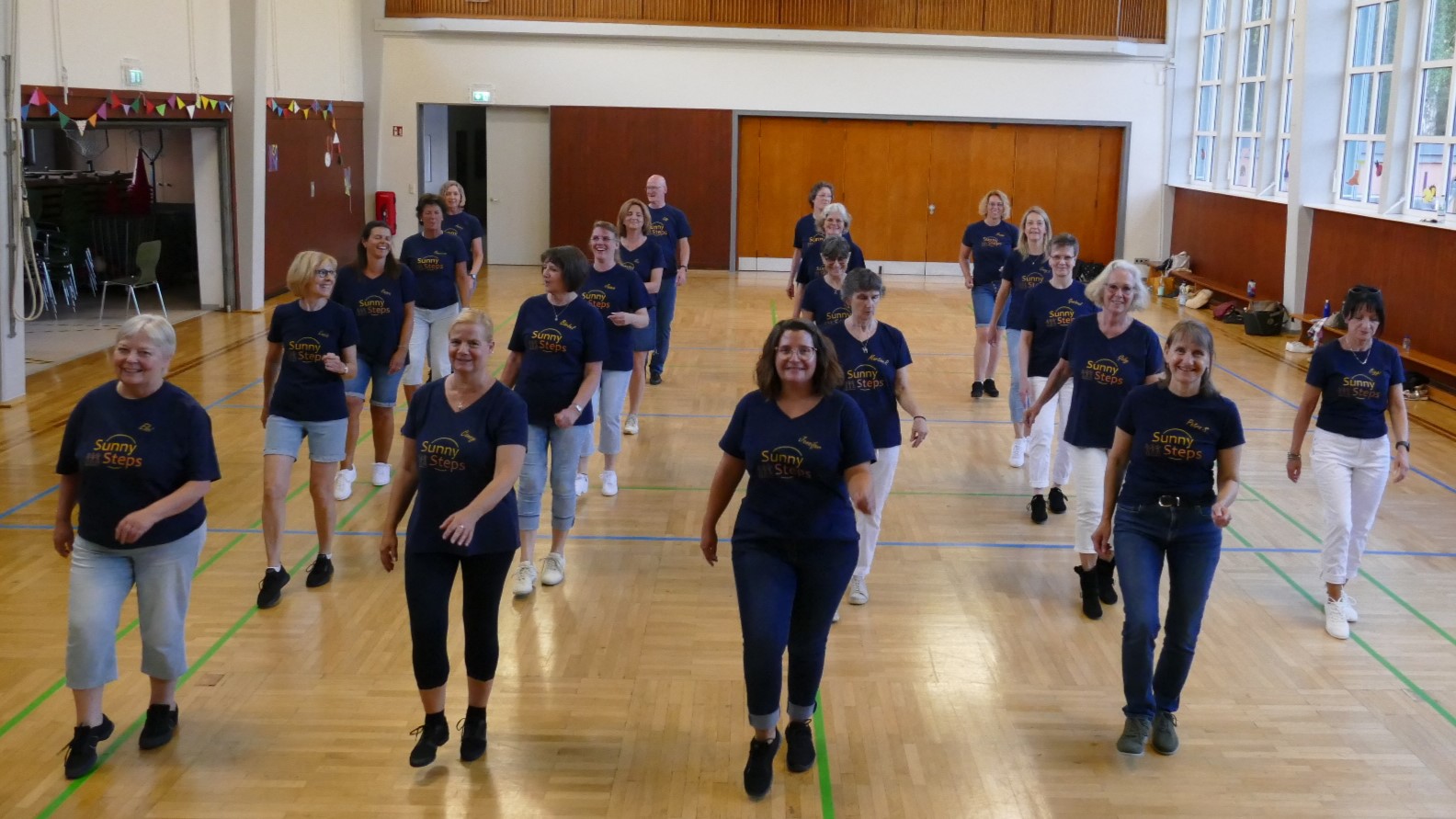 Unsere Gruppe nennt sich Sunny Steps und existiert seit April 2023. Zurzeit sind wir 25 begeisterte Tänzer und Tänzerinnen im Alter von ca. 30 bis 70 Jahren und tanzen schon über 30 Choreografien in verschiedenen Schwierigkeitsstufen.